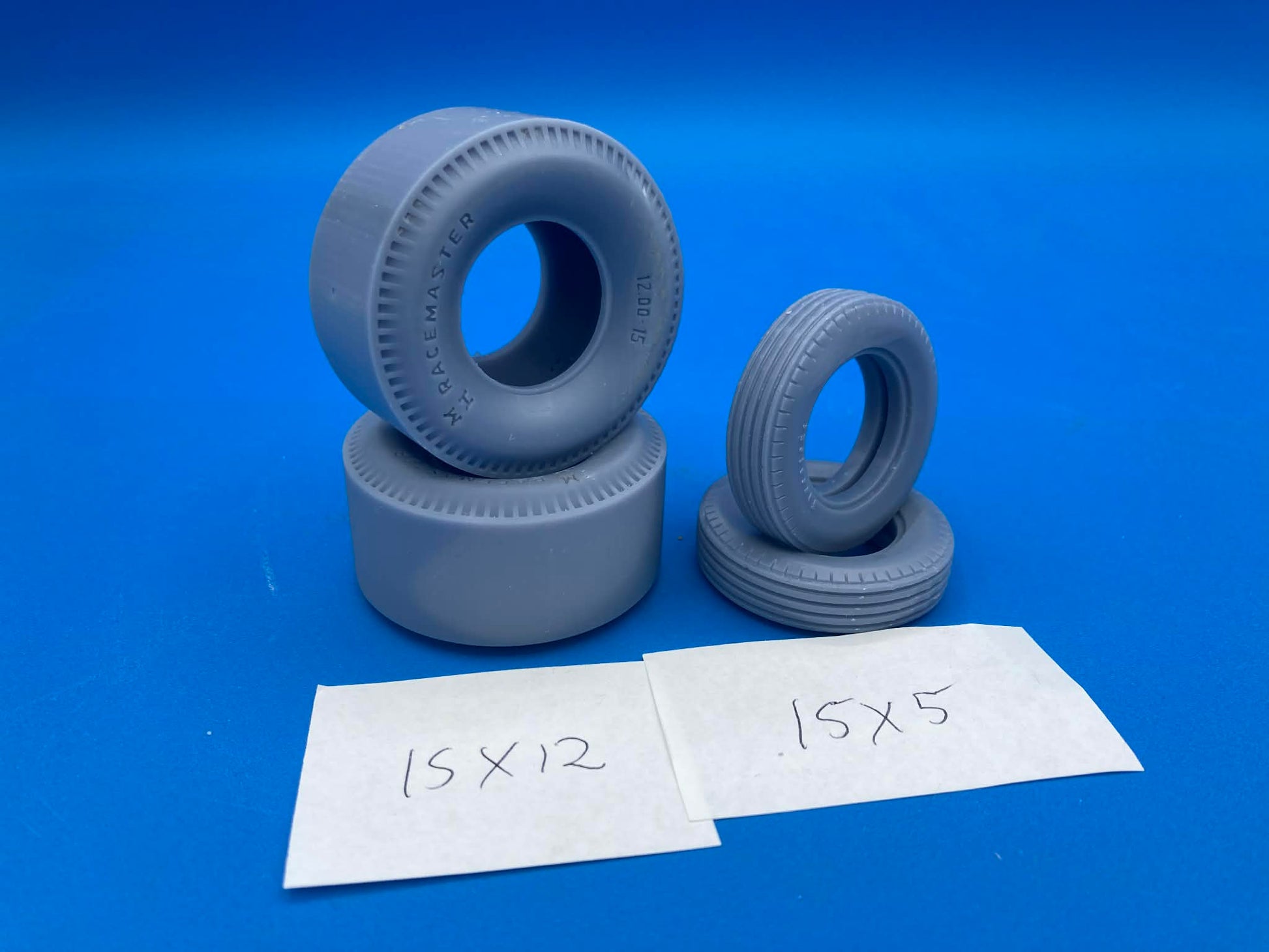 MnH RaceMaster 15x12 pie crust slicks With Firestone Hot Rod Dirt Track 15x5 tires